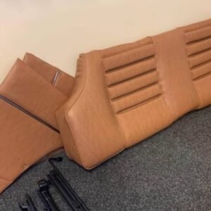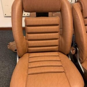 Alfa Romeo Flying Buttress Seats Europe in NEW condition – only just been covered in tan. Both front seats are included, in addition to rear bench, door panels, rear panels, wheel arch covers and arm rests.This is a full interior set that has only just been reconditioned and not installed into a vehicle.Alfa Romeo Flying Buttress Seats Europe Specifications: